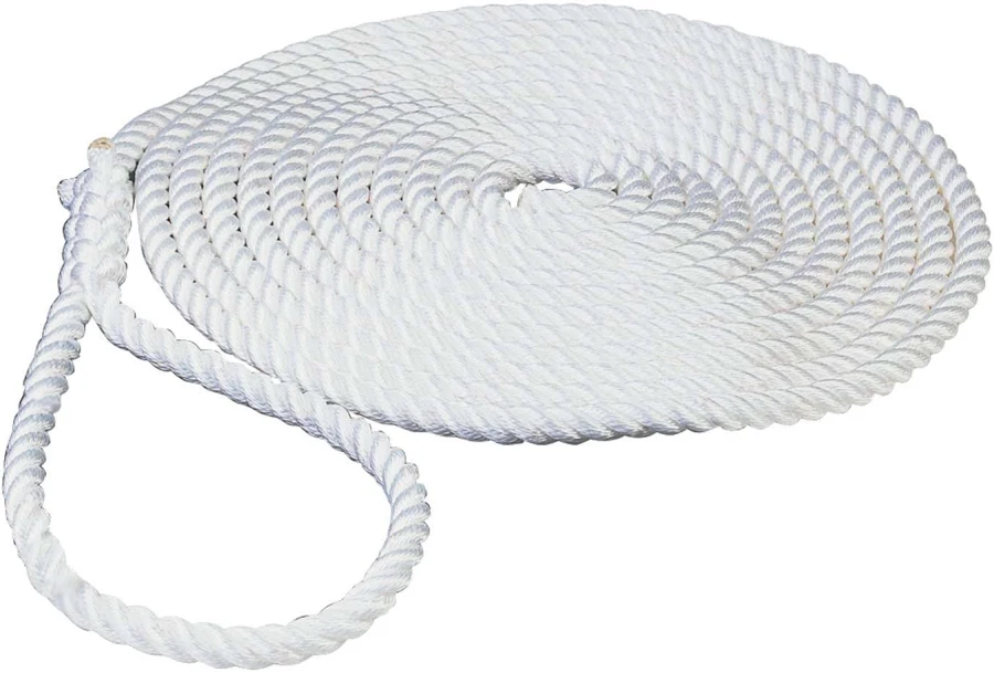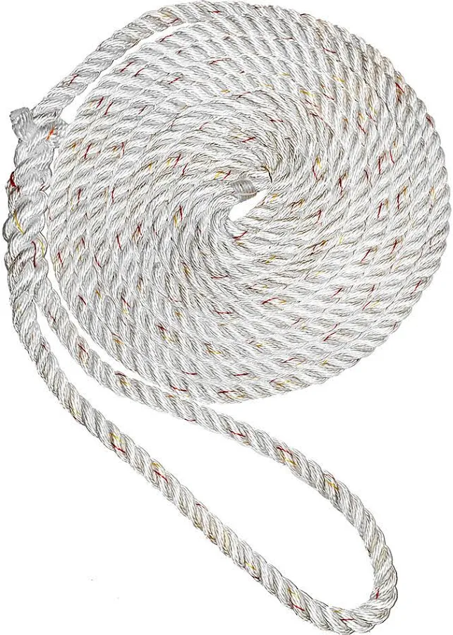 Four double-braided nylon dock lines. Pre-spliced eyes 6400 lb strength.